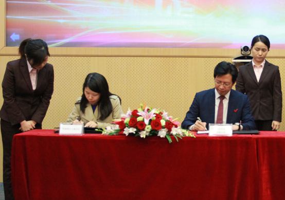 ▲佩信集团创始人兼总裁张东进、招商银行上海分行零售银行部总经理张姝代表双方正式签约