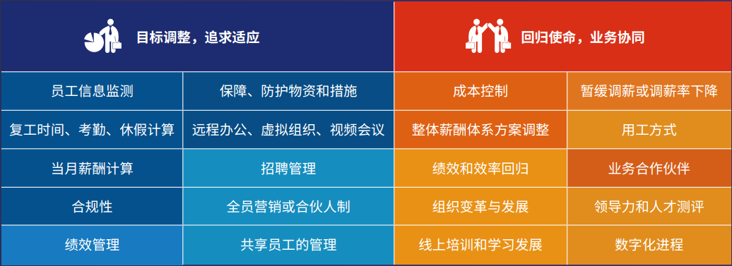在外部环境剧变的危机时期,人力资源管理者要注意工作的轻重缓急,在不同发展阶段发挥不同角色的价值。