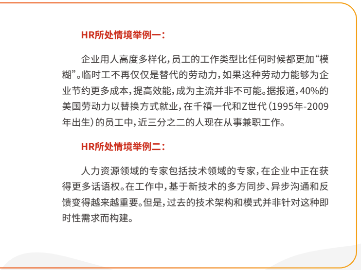在今天体验经济时代,越来越注重员工个体的价值,甚至将更多的所有权转移给每个人。人力资源管理者、员工、企业管理者都可以借助技术比以往获得更多选择和自主权力,也可能更好地进行判断和决策。