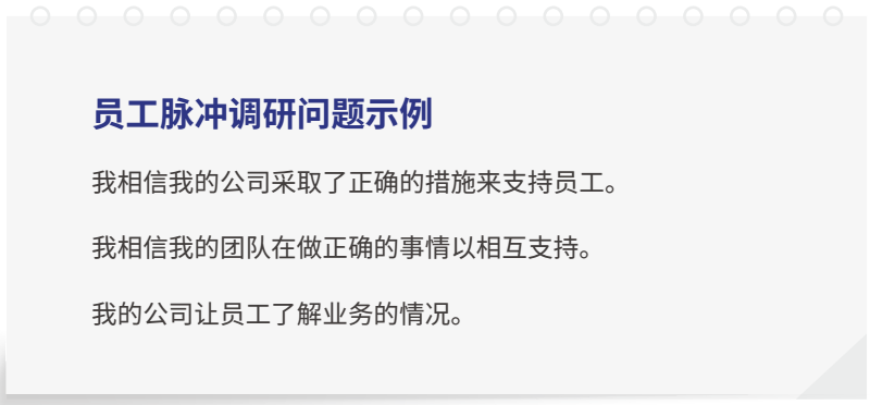 利用倾听、理解和共情的方法,通过员工脉冲调研、在线焦点小组和管理层共同研讨来厘清企业内员工敬业度与活力现状、员工对企业的认同与建议、员工的顾虑与希望获得的支持,以明确企业现有优势、即刻要采取的行动以及下一阶段的目标和关键举措。