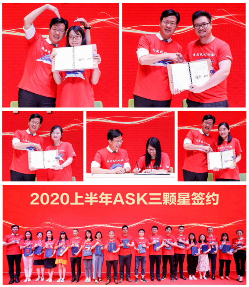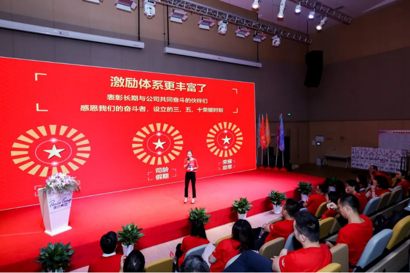 随后,胡娅女士还向全体伙伴表达了上半年公司在疫情最危急时刻,不放弃每位伙伴的决心,坚持不裁员不降薪,与每位伙伴同舟共济,并从下半年开始恢复正常的调薪机制及集团其他奖励机制,在过往ASK荣誉体系基础上,新增“三五十”忠诚员工激励机制。