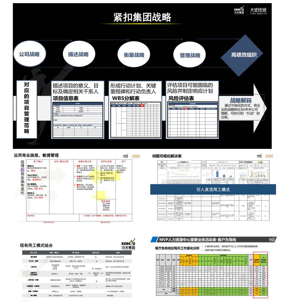 疫情期间,真功夫采取了四大行动来构建敏捷组织,实现降本增效,用工模式组合包括:退休返聘、实习生、兼职、工段外包、时薪外包(劳务派遣)、人事代理(月薪)、自雇职能(月薪制)、高管(年薪制)、核心高管。