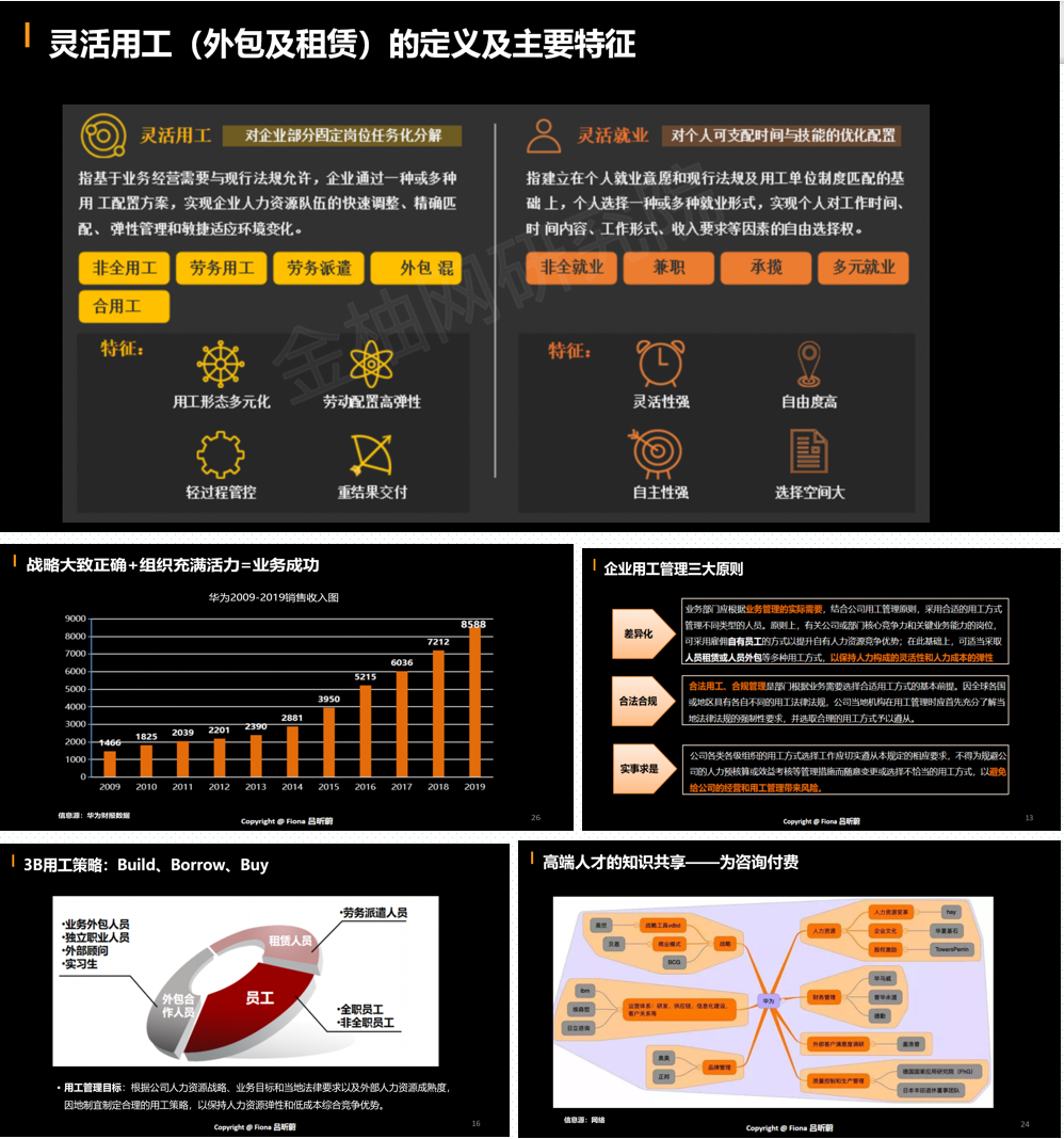 在现场的分享中,他提出三个观点:第一,人力资本上的灵活性让雇主得以迅速扩大或缩减业务规模,并将这一过程中的成本降到最低。第二,灵活用工的员工来自于不同的行业和不同的技术背景,可以给企业在稳定的组织内部带来新的创新力和多样性。最后,这种工作组织方式无疑是突破人员编制限制的解决方案。