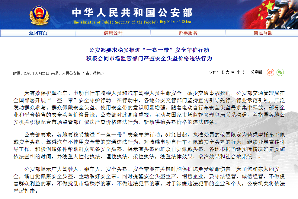 2020年4月21日,公安部交管局下发通知“一盔一带”安全守护行动,全力从全国范围内让更多的消费者养成带头盔的习惯!