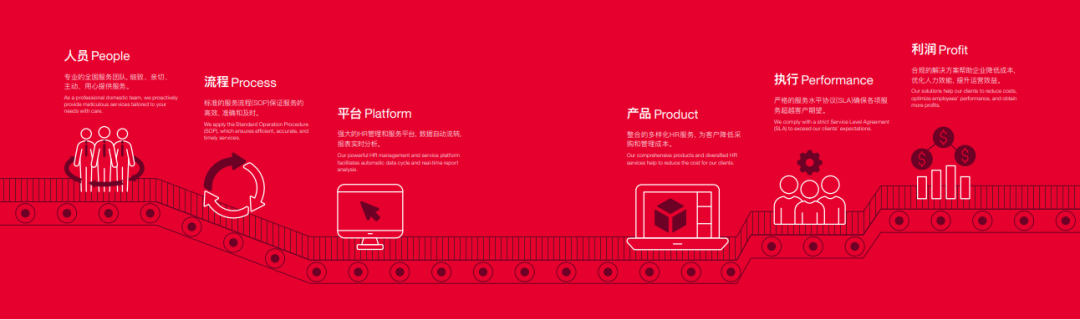 佩琪HRPackage的服务范围涵盖HR共享服务中心咨询和软件平台(SSC)、e-HR软件(SaaS)和劳动力管理平台、人事代理、劳务派遣、招聘和灵活用工、岗位外包、业务外包、商保体检、薪税福利、HR法务、薪酬咨询,以及外籍员工服务等。佩琪是行业少有的同时具有ISO9001服务质量体系认证、ISO27001信息安全管理体系认证的人力资源服务企业。SOP(标准服务流程)+SLA(服务水平协议)双重也保证了佩琪为客户提供的交付服务质量。