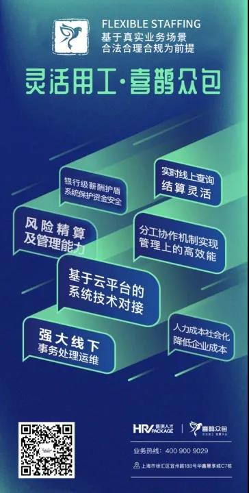 同时深耕人力资源领域,不断加强这一业务细分领域,纵深服务,打造通用类、专业类等多岗位、多元化、多领域的三位一体化的岗位体系,同时利用技术赋能,促进技术与服务的融合,推出灵活用工“喜鹊众包”平台,打造“技术+服务”的智慧福利平台,为企业提供用工策略,提升组织灵活性与合规性,降低企业用工成本与风险的服务与解决方案,激发企业潜能。