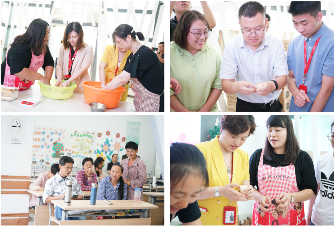 在捐赠仪式结束后,为了能够更加深入地了解阳光家园学员们的日常生活,佩信集团的志愿者们与阳光家园的小伙伴齐聚一起,擀皮、包馅、卡模、塑型。在阳光家园老师们的指导下,不一会儿,案板上就摆满了大家的作品。每一份月饼中,饱含着志愿者对阳光家园学员的爱和他们未来生活寄予的希望。在活动结束后,有志愿者表示,通过这次爱心活动尽了自己绵薄之力,为他们带去温暖,看着他们洋溢在嘴角的笑容,特别有感染力,那一刻也觉得自己特别幸福,同时也希望他们可以知道,这个社会不曾忘记他们,总有像我们这么一群人,一直都在默默地关心支持他们。