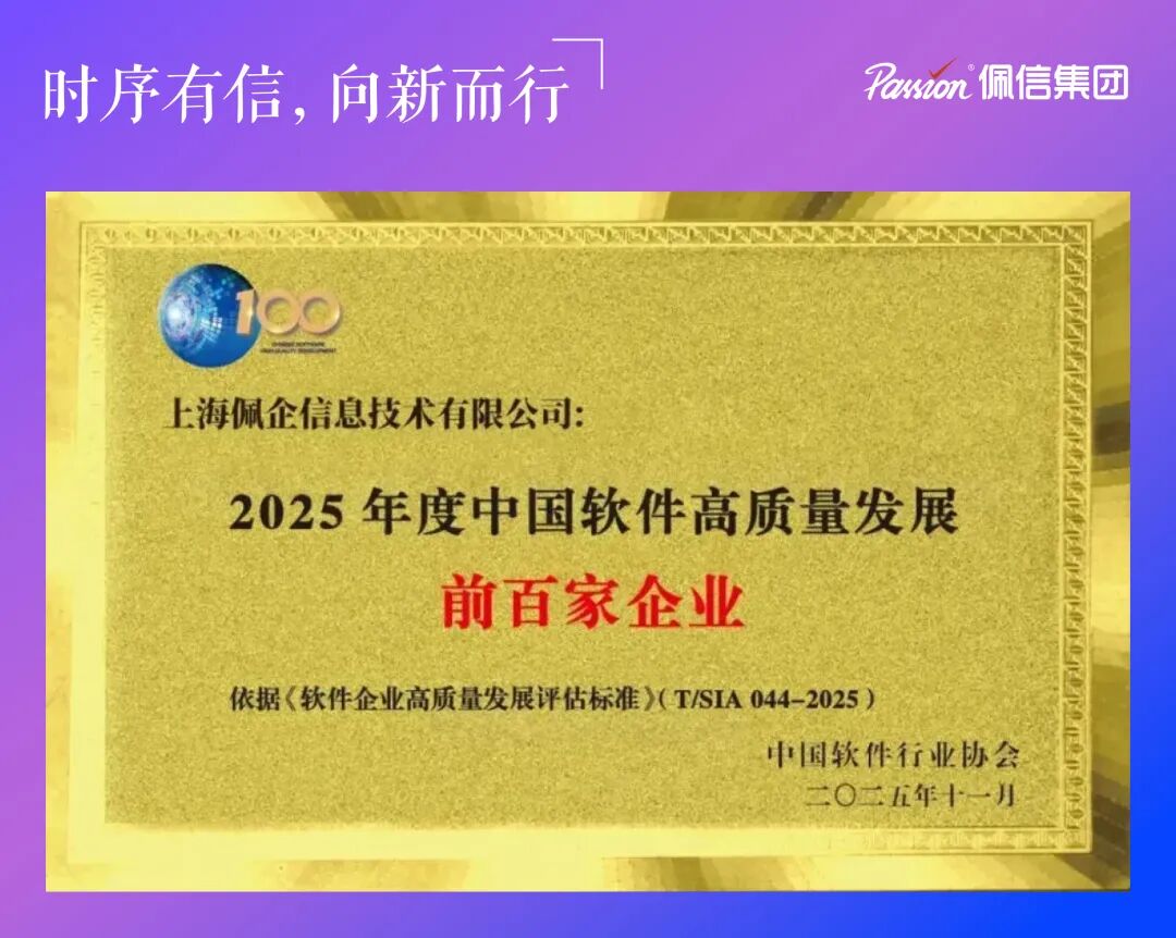 2025年,佩企科技首度入选“中国软件高质量发展百强”,并获评“专精特新”企业。