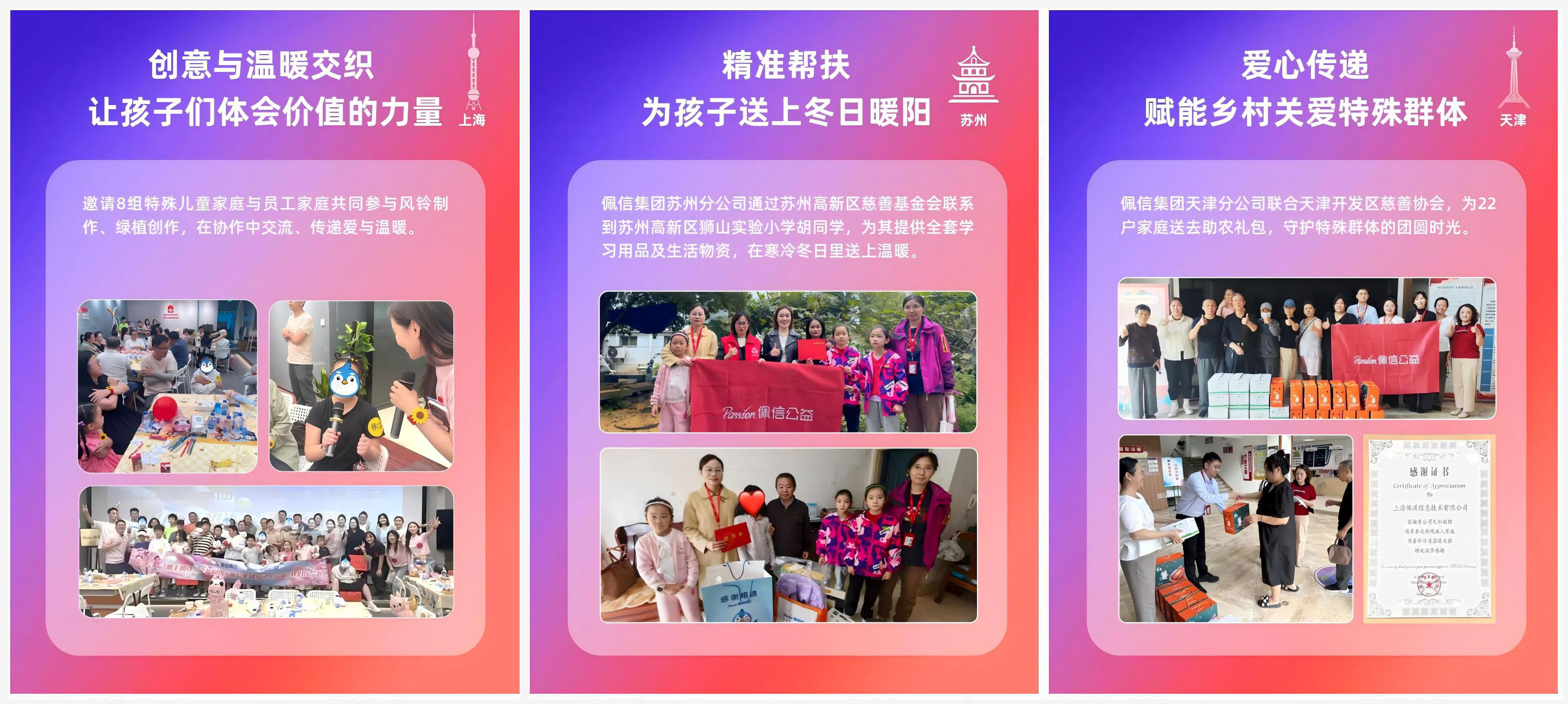 企业的高度,由利润定义;企业的温度,由善意丈量。2025年,佩信发起“六城同心·人才善循环”公益行动,在上海、深圳、南通、靖江同步开展数字素养普及、女性技能提升与乡村教育支持。