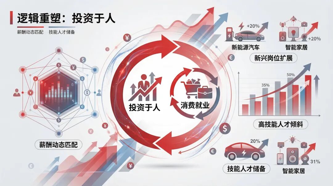 对企业而言,传统成本导向的薪酬模式面临挑战。企业需构建与国民增收计划同频的机制,利用数字化工具实现绩效与薪酬的动态匹配,确保报酬向高技能人才倾斜。同时,新能源汽车、智能家居等高增长赛道催生的岗位扩容,要求企业前瞻布局技能人才储备,以应对消费提振带来的用工需求变化。