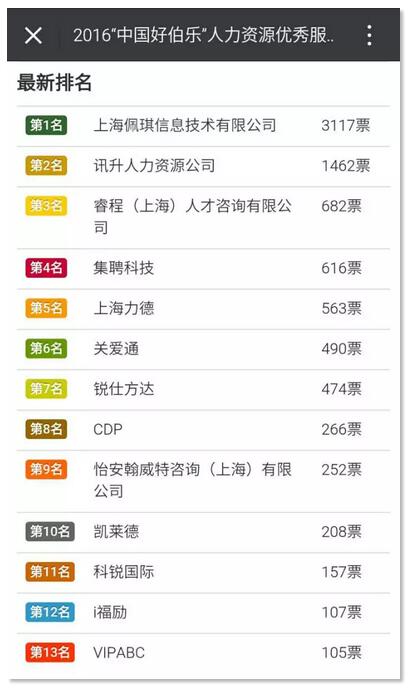 在初审阶段共收到共收到来自80+企业的参选信息,约15,000投票,访问量高达65,000,佩琪人才以3117票位列榜首。