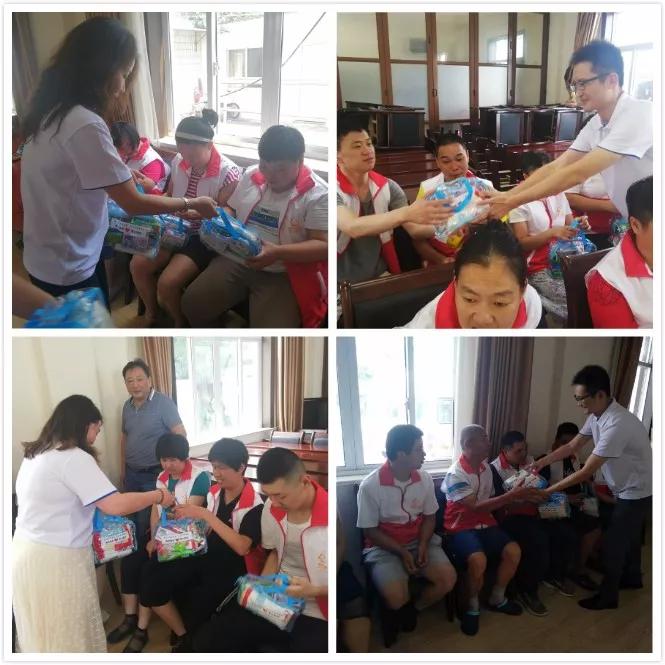 佩琪人才和闵行区残联工作人员与学员亲切交谈,详细了解他们的身体、生活情况,鼓励他们自信、自强、自立。并给每位学员送去了夏日清凉礼包,大家拿到礼包后,满脸欢喜,对志愿者们表达了感激之情。